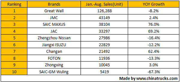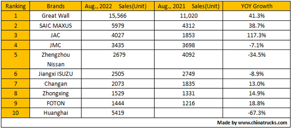 Sales of pickup trucks in China were close to 40000 units in August, with 18% YOY and 8% MOM growth. In August, a total of 12,100 units of Chinese pickup trucks were exported, with SAIC MAXUS and JAC exporting the largest volume.