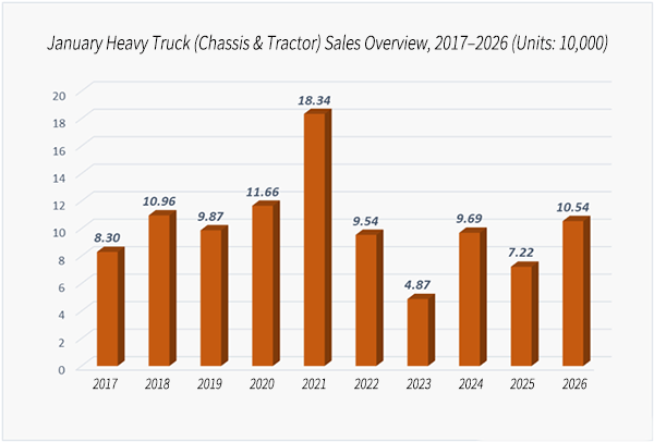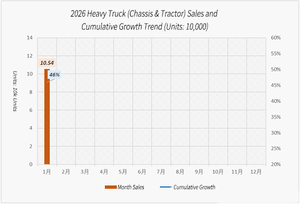 Data from the China Association of Automobile Manufacturers (CAAM) shows that China sold a total of 323,500 trucks in January 2026, covering heavy, medium, and light trucks. This is 28% higher than January 2025, but 10% lower than December 2025.