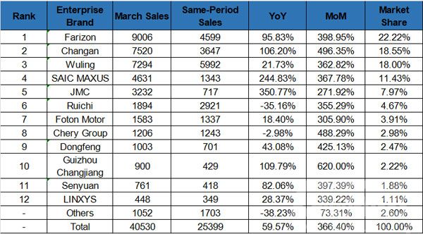 March Sales Ranking: Farizon took the championship again. SAIC MAXUS and JMC Light Van surged more than 200%!